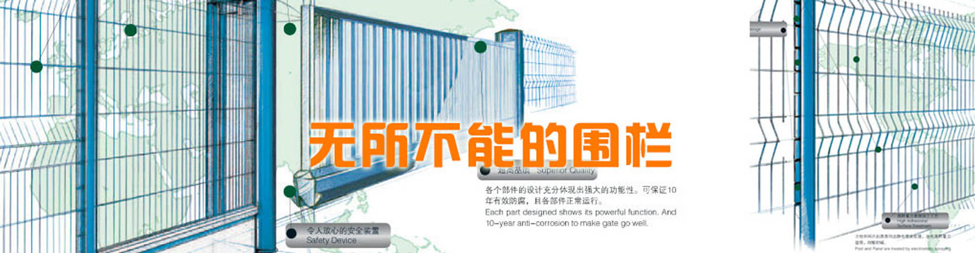 河北思固爾圍欄設(shè)施有限公司致力于專業(yè)的場地防護(hù)產(chǎn)品的研發(fā)與生產(chǎn),為全球客戶提供優(yōu)質(zhì)先進(jìn)的金屬圍欄、全鋼結(jié)構(gòu)大門和其他防護(hù)產(chǎn)品及服務(wù)。思固爾圍欄以一種目前市場上成熟的設(shè)計(jì)理念將立柱與焊網(wǎng)結(jié)合在一起,可以應(yīng)廣大客戶的要求提供理想的解決方案。公司于2002年通過ISO9001質(zhì)量管理體系認(rèn)證;2004年被評為項(xiàng)目建設(shè)先進(jìn)單位,信用優(yōu)良企業(yè),科技進(jìn)步先進(jìn)單位;2006年底公司取得了自營出口權(quán);2006年5月10日思固爾圍欄獲得中華人民共和國國家知識產(chǎn)權(quán)局頒發(fā)的實(shí)用新型專利證書目前,公司產(chǎn)品銷售網(wǎng)絡(luò)已遍及新疆、黑龍江、遼寧、江蘇、內(nèi)蒙古、海南、廣西、廣東、湖南、湖北、上海、福建、浙江、河南、北京等全國各地,并出口至加拿大、烏克蘭、伊朗、新西蘭、泰國、俄羅斯、南非、印度、巴基斯坦、韓國等30多個國家和地區(qū)。今天的思固爾已發(fā)展成集研發(fā)、設(shè)計(jì)、制造、貿(mào)易為一體的綜合性實(shí)體公司。思固爾人一如既往地秉承之前的創(chuàng)業(yè)精神,引進(jìn)與運(yùn)用現(xiàn)代的管理模式,迎合未來的市場需求,竭力滿足不同客戶的需求,力爭早日把思固爾打造成中國的民族品牌!-----------------------------------------...